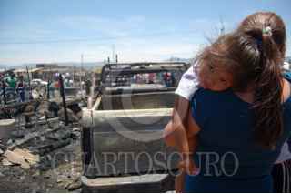 MORELIA, MICHOACÁN, 28ABRIL2010.- Treinta viviendas fueron consumidas por el fuego que se registró en la colonia Lomas del Tzindurio, ubicada al poniente de la capital, se reportaron cuatro lesionados entre ellos un policía y un bombero, más de 150 personas quedaron en el desamparo luego de que perdieran su hogar, no se sabe las causas del siniestro. FOTO: LEOVIGILDO GONZÁLEZ/CUARTOSCURO.COM