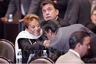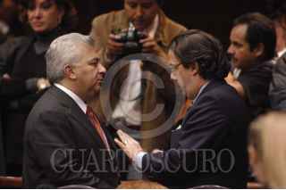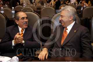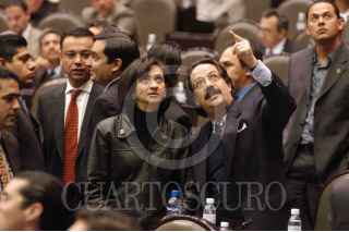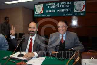 México D.F22DICIEMBRE2003.- -Los diputados Gustavo Madero y Francisco Suárez, ambos miembros de la Comisión de Hacienda y Crédito Público de la Cámara de Diputados realizaron una conferencia de prensa en la que hablaron sobre la propuesta de regorma fiscal. FOTO: Germán Romero/CAURTOSCURO.COM