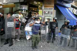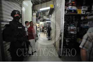 MÉXICO, D.F., 29ABRIL2010.- Elementos antimotines y del grupo táctico de la Policía Federal y PGR, realizaron un operativo contra piratería en el centro comercial Meave ubicado en el Eje Central Lazaro Cardenas colonia Centro en la delegación Cuahutemoc. FOTO: SAÚL LÓPEZ/CUARTOSCURO.COM