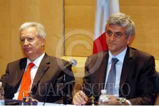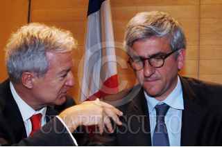 MÉXICO, D.F., 29ABRIL2010.- El ministro de defensa de Francia Herve Morin y el embajador de Francia en México Daniel Parfait durante una conferencia de prensa tras un acuerdo bilateral en donde podrían monitorear el Mar Caribe atravez de sistemas satelitales para detectar las redes delincuenciales y el posible trafico de drogas. FOTO: ALBERTO VERA/CUARTOSCURO.COM