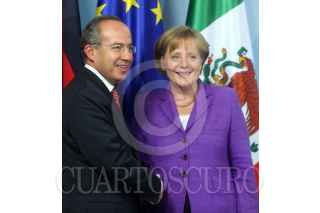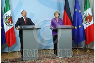 BONN, ALEMANIA, 02MAYO2010.- El presidente de México, Felipe Calderón Hinojosa; durante una conferencia conjunta en un encuentro bilateral con la canciller de este país, Angela Merkel. FOTO: ALFREDO GUERRERO/CUARTOSCURO.COM