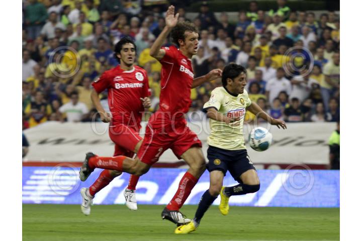 M…XICO, D.F., 02MAYO2010.- Durante el encuentro entre las Aguilas del America y los Diablos del Toluca se presento un conato de bronca durante el partido de cuartos de final del Torneo Bicentenario que se realizo en el estadio Azteca quedando el marcador empatado a 2 goles. FOTO: RODOLFO ANGULO/CUARTOSCURO.COM