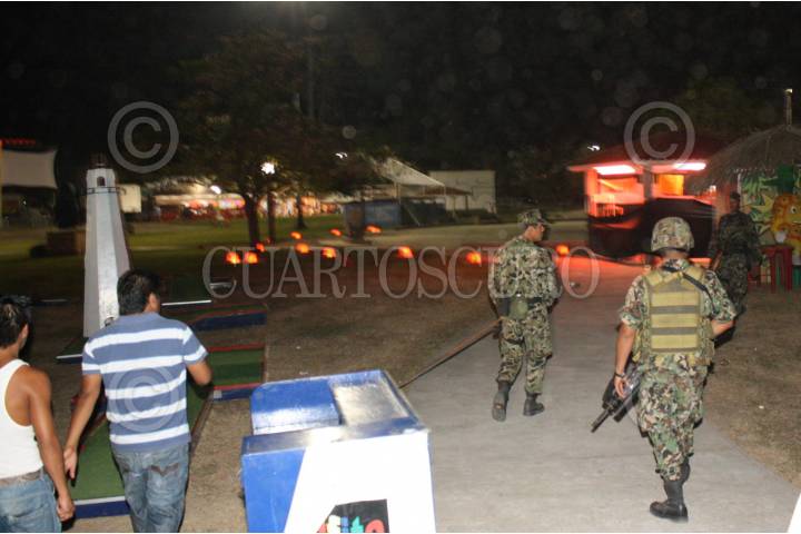 VILLAHERMOSA, TABASCO, 03MAYO2010.- Elementos del Ejército Mexicano con sede en Tabasco, montaron un fuerte operativo esta madrugada en las inmediaciones de la Expo Feria Tabasco 2010, después de que se recibió una llamada anónima por una presunta amenaza de bomba entre las áreas del teatro del Pueblo y el Teatro al Aire libre. FOTO: ESPECIAL/CUARTOSCURO.COM