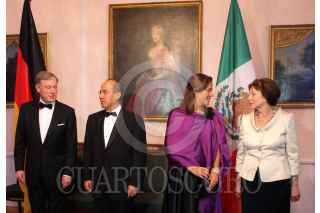 BERLÍN, ALEMANA, 03MAYO2010.- Horst Kohler, Presidente de Alemania, en compañía de Felipe Calderón, Mandatario mexicano, su esposa Margarita Zavala conversaron minutos antes de la cena de estado que tuvo lugar en el Palacio Presidencial de Bellevue. FOTO: ALFREDO GUERRERO/CUARTOSCURO.COM