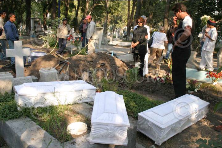 México, D.F. 24DICIEMBRE2003.- Familiares de los niños asesinados en la colonia Obrera y su madre Dulce María García Ortega quién se suicidó arrojándose a las vías del metro Chabacano, les dan el último adios. Esta tarde fueron sepultados en el panteón Santa Lucía. FOTO: Moisés Pablo/CUARTOSCURO.COM