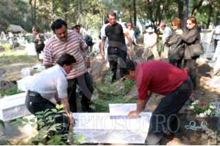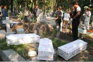 México, D.F. 24DICIEMBRE2003.- Familiares de los niños asesinados en la colonia Obrera y su madre Dulce María García Ortega quién se suicidó arrojándose a las vías del metro Chabacano, les dan el último adios. Esta tarde fueron sepultados en el panteón Santa Lucía. FOTO: Moisés Pablo/CUARTOSCURO.COM