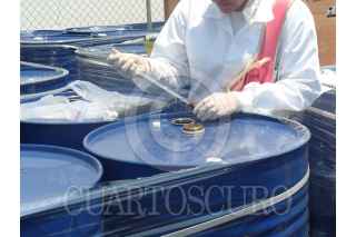NANZANILLO, COLIMA 06MAYO2010.-En coordinación entre el Servicio de Administración Tributaria, la Secretaría de Marina-Armada de México y la Procuraduría General de la República, se llevó a cabo el aseguramiento de un cargamento de alrededor de 80 mil kilogramos de Ethyl Phenyl Acetate (Fenil Acetato de Etilo), mismos que eran transportados en los contenedores números GLDU3375059, TTNU3743918, IPXU3007138, GLDU3471685 y TTNU1875622, a bordo del buque “MSC NORASIA ALYA”, procedentes de Shangai, China, y que fueron descargados en mencionado puerto mexicano. El citado precursor puede ser utilizado ilícitamente para la elaboración de drogas sintéticas (crack, cristal, éxtasis, etcétera) y como acetato etílico, modificando su estructura (adicionando o eliminando reactivos) para la conversión de la cocaína básica en clorhidrato de cocaína, utilizándolo como solvente en la fase final de proceso. FOTO: CUARTOSCURO.COM