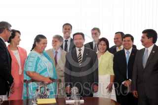 BRASILIA, BRASIL, 06MAYO2010.- Senadores y diputados federales que participaron en la II Reunión Interparlamentaria Brasil-México, se reunieron en privado con el ministro de Relaciones Exteriores de Brasil, Celso Amorim. Al concluir el encuentro el senador Carlos Navarrete Ruiz explicó que el canciller habló sobre la importancia de impulsar el intercambio bilateral y para ello, se deberá explorar cada sector. FOTO: CUARTOSCURO.COM