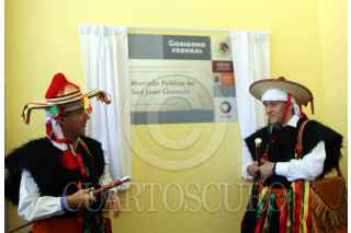 SAN JUAN CHAMULA, CHIAPAS, 07MAYO2010.- Felipe Calderón, Presidente de México durante la inauguración del mercado de San Juan Chamula que se llevo a cabo en la entidad. FOTO: ALFREDO GUERRERO/CUARTOSCURO.COM