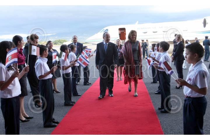 SAN JOSE, COSTA RICA, 07MAYO2010.- Felipe Calderón, Presidente de México, conversa con Laura Chinchilla Miranda, Presidenta electa de Costa Rica durante la reunión bilateral que realizaron en un hotel de la capital. FOTO: ARIEL GUTIERREZ/CUARTOSCURO.COM