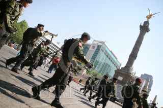 MÉXICO, D.F., 08MAYO2010.- Distintas escuelas militarizadas y de bandas de guerras desfilaron por la avenida Reforma pasando por el Ángel de la Independencia al conmemora el 257 natalicio de Don Miguel Hidalgo y Costilla. FOTO: MARCO POLO GUZMÁN HERNÁNDEZ/CUARTOSCURO.CO