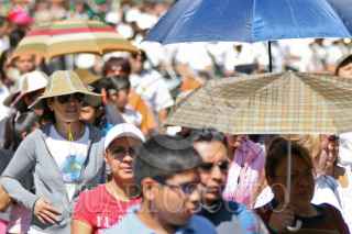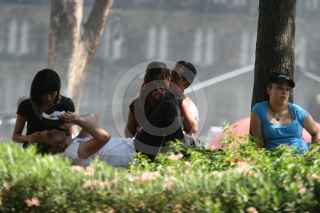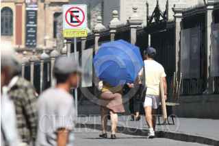 MÉXICO, D.F., 08MAYO2010.- Las altas temperaturas que se registran en la capital del país provoca que muchos de sus habitantes salgan con sombrillas o gorras para protegerse de los rayos del sol. FOTO: MARCO POLO GUZMÁN HERNÁNDEZ/CUARTOSCURO.COM