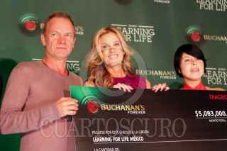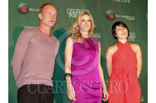 MÉXICO, D.F., 08MAYO2010.- El músico ingles Sting acompañado de Rebeca de Alba y la cantante mexicana de rock Ely Guerra durante una conferencia de prensa horas previas a la presentación del músico ingles que se realizará hoy por la noche en el Colegio de las Vizcainas en donde todos los fondos recaudados serán para la fundación “Learning for Life” en apoyo a la educación. FOTO: RODOLFO ANGULO/CUARTOSCURO.COM
