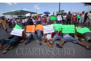 CANCUN, QUINTANA ROO, 08MAYO2010.- Colonos de colonias irregulares se manifestaron en la av. Kabah una de las principales de la ciudad desquiciando el trafico, la protesta fue para exigir transporte hacia esas colonias y que las combis o microbuses puedan llegar del centro hacia las colonias irregulares que se encuentran en las afueras de la ciudad. FOTO: AMARANTA PRIETO/CUARTOSCURO.COM
