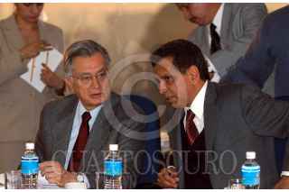 México, D.F. 26DIC2003.- Los senadores del PRI Manuel Bartlett y Fidel Herrera conversan antes del inicio de la reunion de trabajo de la comisión de hacienda del senado. FOTO: Germán Romero/CUARTOSCURO.COM