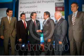MÉXICO, D.F., 11MAYO2010.- Juan Molinar Horcasitas, titular de la Secretaría de Comunicaciones y Transportes y Juan Manuel Oliva, gobernador de Guanajuato, signaron la firma del proyecto de concesión de la autopista Salamanca-León; esto en el salón el Molino de la Hacienda Los Morales. FOTO: CUARTOSCURO.COM