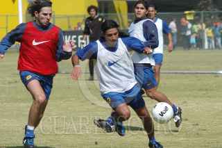 México D.F. 27DIC2003.- Dulio Davino ha comenzado a realizar practicas con el equipo titular, en la jugada con Jesus Mendoza. FOTO: Germán Romero/CUARTOSCURO.COM