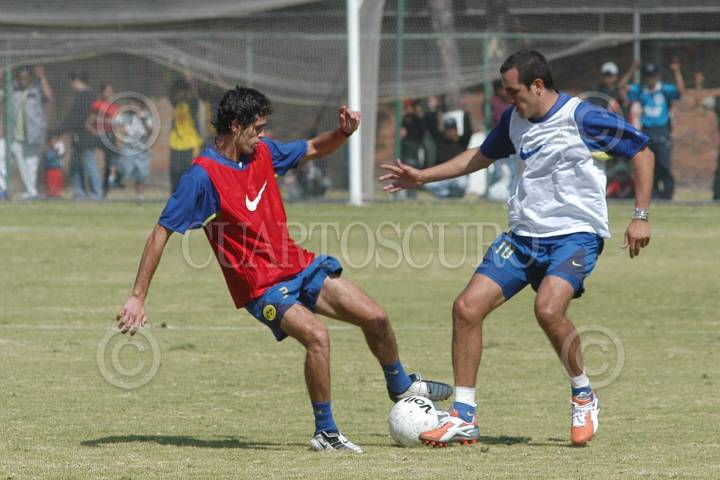 México D.F. 27DIC2003.- Dulio Davino ha comenzado a realizar practicas con el equipo titular, en la jugada con Jesus Mendoza. FOTO: Germán Romero/CUARTOSCURO.COM