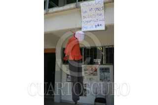 QUERETARO, QUERETARO, 13MAYO2010.- A manera de ironía contra la violencia ocurrida hacia las víctimas atrapadas en fuego cruzado en la guerra entre el gobierno federal y el narcotráfico, alumnos de la Facultad de Sociología colocaron una propuesta de maniquíes victimados en los pasillos de la facultad. FOTO: DEMIAN CHAVEZ/CUARTOSCURO.COM