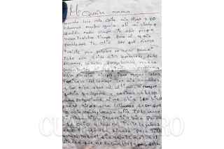 MÉXICO, D.F., 13MAYO2010.- Carta que supuesta mente escribieron las niñas que murieron en la delegación de Milpa Alta pero en base a una investigación policial, Rosa María Ríos Vázquez, fue detenida y presentada a los medios de comunicación en las instalaciones de la PGJDF por su presunta responsabilidad en el delito de homicidio en contra de sus dos hijas, después de haber confesado que ella fue la que escribió una carta con un recado póstumo encontrado en el lugar de los hechos. FOTO: LUIS CARBAYO/CUARTOSCURO.COM