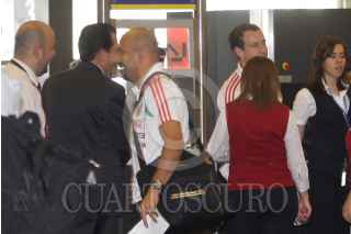 MÉXICO, D.F., 14MAYO2010.- Hector Moreno y Gerardo Torrado, jugadores de la Selección Mexicana de Futbol a su llegada al Aeropuerto Internacional de la Ciudad de México despues de haber realizado una serie de encuentros amistosos en Estados Unidos previo al mundial de Sudafrica 2010. FOTO: RODOLFO ANGULO/CUARTOSCURO.COM