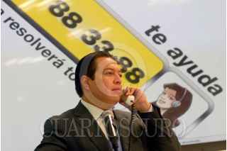 MÉXICO, D.F., 16MAYO2010.- Mario Delgado Carrillo, Secretario de Finazas, durante la presentación del sistema de operadora virtual “Justina”, que ayuda a orientar sobre cualquier tramite que quieran realizar los capitalinos. FOTO: CUARTOSCURO.COM