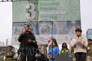 MÉXICO, D.F., 16MAYO2010.- Alejandro Rojas Díaz-Duran, Secretario de Turismo y Martha Delgado, Secretaria del Medio Ambiente, encabezaron una ceremonia del 3er Aniversario Programa Muévete en Bici 2007-2010. FOTO: CUARTOSCURO.COM