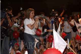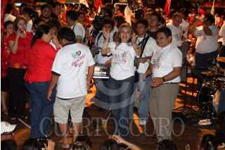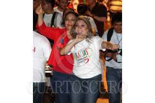 MERIDA, YUCATAN, 17MAYO2010.- Angélica Araujo Lara, Candidata del PRI-PVEM a la alcaldía de esta capital, festejo en el monumento a la patria con cientos de simpatizantes. FOTO: FRANCISCO BALDERAS/CUARTOSCURO.COM