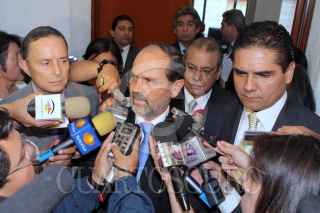 MÉXICO, D.F., 18MAYO2010.- Fernando Castro Trenti, senador priista, Gustavo Madero, coordinador de los senadores panistas y Silvano Aureoles Conejo, vicecoordinador de los senadores perredistas, presidieron una reunión en la cual abordaron el tema de la desaparición de Diego Fernández de Cevallos, esto en la sede la Cámara Alta. FOTO: IVÁN MENDEZ/CUARTOSCURO.COM