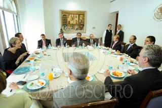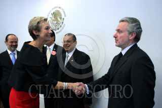 MÉXICO, D.F., 18MAYO2010.- Judith Anne McGregor, embajadora de Reino y Santigo Creel, senador panista, al finalizar la Junta de Coordinación Política. FOTO: CUARTOSCURO.COM