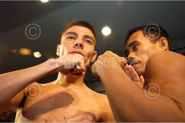 México D.F. 08 Enero 2004.- El boxeador mochitense Jorge ¨ El Travieso¨Arce recibio el apoyo de su mamá Doña Juanita durante la ceremonia de pesaje. FOTO: Germán Romero/CUARTOSCURO.COM