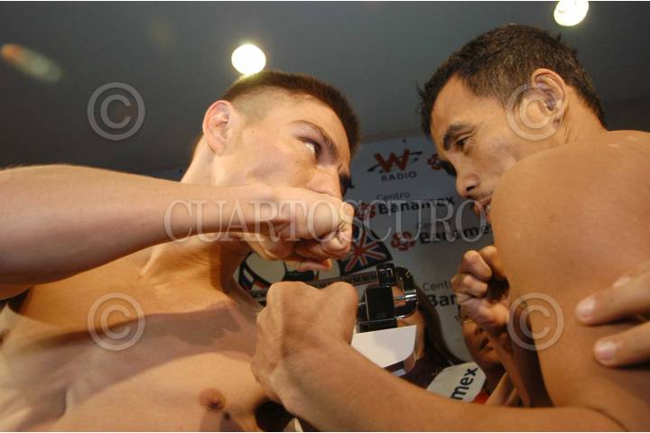 México D.F. 08 Enero 2004.- El boxeador mochitense Jorge ¨ El Travieso¨Arce recibio el apoyo de su mamá Doña Juanita durante la ceremonia de pesaje. FOTO: Germán Romero/CUARTOSCURO.COM