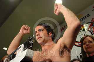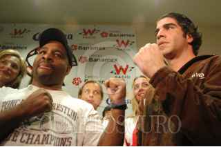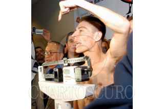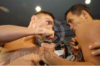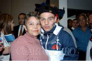 México D.F. 08 Enero 2004.- El boxeador mochitense Jorge ¨ El Travieso¨Arce recibio el apoyo de su mamá Doña Juanita durante la ceremonia de pesaje. FOTO: Germán Romero/CUARTOSCURO.COM