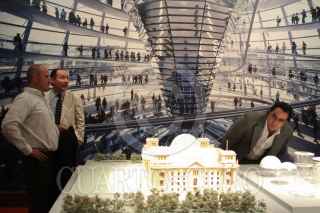 MÉXICO, D.F., 21MAYO2010.- Una cronología de 227 proyectos del despacho Norman Foster + Partners que ha realizado en veinte países: planos, dibujos, maquetas, fotografía de gran formato video, forman parte de esta exposición arquitectónica en el Antiguo Colegio de San Ildefonso. Creado en 1967, el despacho del reconocido arquitecto británico Norman Foster, ha sido uno de los pioneros en proponer un enfoque sustentable a la arquitectura y la ecología. FOTO: MOISÉS PABLO/CUARTOSCURO.COM