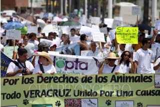 VERACRUZ, VERACRUZ., 22MAYO2010.- Aproximadamente 350 personas marcharon en distintos puntos del Boulevard Ávila Camacho para protestar en contra del maltrato animal y exigir a las autoridades que se implementen leyes que protejan a los animales, en el marco del día de la biodiversidad estas manifestaciones se efectuaron en varias ciudades del estado y del país. FOTO: FÉLIX MÁRQUEZ/CUARTOSCURO.COM
