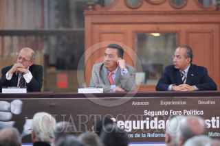 MÉXICO D.F., 24MAYO2010.- Carlos Pascual, embajador de Estados Unidos en México y Bernado Selpulveda Amor, miembro de la Corte Internacional de Justicia, durante la ceremonia de inauguración del 2º. Foro de Seguridad y Justicia, esto en el Archivo General de la Nación. FOTO: GUILLERMO PEREA/CUARTOSCURO.COM