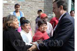 MÉXICO, D.F., 26MAYO2010.- Marcelo Ebrard, jefe de gobierno del Distrito Federal abraza a una vecina de la colonia Paraje Caballito en la delegación Alvaro Obregon en donde pondría en marcha el sistema que abastecerá de agua potable a las colonias Chamontoya, Tlacoyaque y Paraje Caballito en dicha demarcación pero no pudo ser inaugurado debido a la falta de energía eléctrica. FOTO: RODOLFO ANGULO/CUARTOSCURO.COM