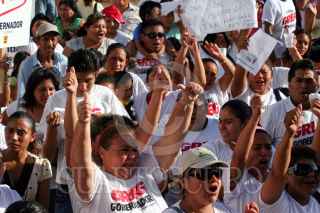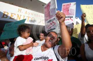 CANCÚN, QUINTANA ROO, 26MAYO2010.- Simpatizante y seguidores de Greg Sánchez, candidaro del perredismo a la gubernatura de Quintana Roo, se manifestaron por la detención de este la noche de ayer por federales en el aeropuerto de la ciudad cuando este regresaba de la Ciudad de México, se le imputan presuntos vínculos con el lavado de dinero procedente del narcotráfico. FOTO: AMARANTA PRIETO/CUARTOSCURO.COM