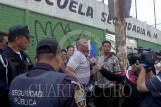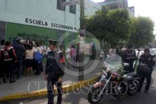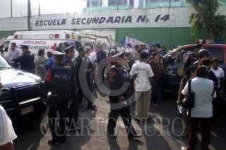 MÉXICO, D.F., 27MAYO2010.- Una joven de nombre Ingrid Lozano de 15 años, recibió un impacto de arma de fuego en la pierna izquierda al ser accionada por un compañero de escuela del tercer año al interior de la escuela Secundaria número 14 ubicada en las calles Constitución de la República y Coahuila en la colonia Providencia en la Delegación Gustavo A. Madero. Padres de familia manifestaron su indignación por lo sucedido pidiendo que se tome cartas en el asunto ya que se habían implementado operativos para evitar este tipo de accidentes en las escuelas del Distrito Federal. FOTO: LUIS CARBAYO/CUARTOSCURO.COM