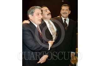 Los diputados priístas Arturo Nuñez, Rafael Oceguera y Enrique Jackson virtual lider de la bancada del PRI en San Lazaro, conversan después de la cluasura de las sesiones de la comisión permanente del Congreso de la Unión.