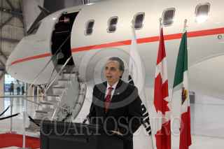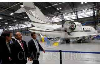 MONTREAL, CANADA, 28MAYO2010.- Felipe Calderon, Presidente de México, acompañado por empresarios durante el recorrido por la planta Bombardier. FOTO: ALFREDO GUERRERO/CUARTOSCURO.COM