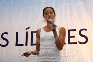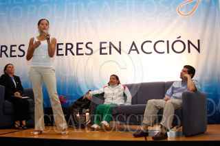 MÉXICO, D.F., 29MAYO2010.- Iridia Salazar, medallista olímpica en tae kwon do, habló sobre su experiencia de vida ante mujeres que militan en el Partido Acción Nacional que acudieron a la conferencia sobre mujeres líderes del Partido Acción Nacional. (PAN). FOTO: IVAN STEPHENS/CUARTOSCURO.COM