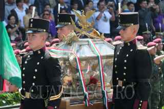 MÉXICO, D.F., 30MAYO2010.- Cadetes del Heroico Colegio Militar exhumaron los restos de Miguel Hidalgo, Ignacio Allende, Juan Aldama, José María Morelos, Mariano Matamoros, Mariano Jiménez, Javier Mina, Vicente Guerrero, Leona Vicario, Andrés Quintana Roo, Nicolás Bravo y Guadalupe Victoria de la columna del Ángel de la Independencia durante un homenaje a los restos de los Héroes de la Patria. FOTO: RODOLFO ANGULO/CUARTOSCURO.COM