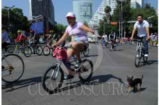 MÉXICO, DF., 30MAYO2010.- Miles de personas participaron en el Trigésimo Tercer Ciclotón Bicentenario, con un recorrido es de 32 kilometros por distintas zonas de la capital saliendo de la colonia Juarez de la delegación Cuauhtemoc. El gobierno del DF invita a participar a turistas y habitantes de esta ciudad el último domingo de cada mes a salir a la calle en bicicleta, patines y a caminar. La imagen en la calle Durango en la colonia Condesa. FOTO: PEDRO VALTIERRA/CUARTOSCURO.COM