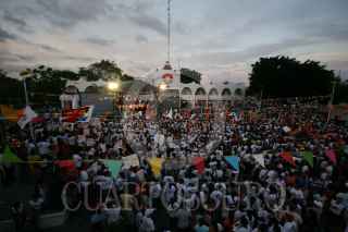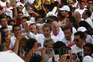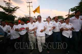 CANCUN, QUINTANA ROO, 30MAYO2010.- Jesús Ortega, líder nacional del PRD, acompañado de Niurka Saliva, esposa del candidato del PRD a la gubernatura del Estado Greg Sanchez detenido por presuntos nexos con el narcotrafico, durante un mitin de apoyo en la plaza de la reforma en esta ciudad. FOTO: AMARANTA PRIETO/CUARTOSCURO.COM