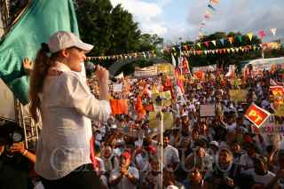 CANCUN, QUINTANA ROO, 30MAYO2010.- Niurka Saliva, esposa del candidato del PRD a la gubernatura del Estado Greg Sanchez detenido por presuntos nexos con el narcotrafico, durante un mitin de apoyo en la plaza de la reforma en esta ciudad. FOTO: AMARANTA PRIETO/CUARTOSCURO.COM