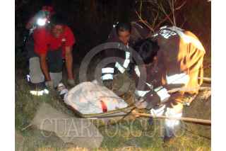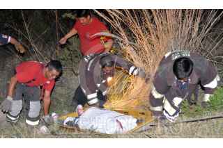 NAUCALPAN, ESTADO DE MÉXICO, 31MAYO2010.- Esta madrugada fue encontrado un vehículo stratus dentro de una barranca a la altura del kilómetro 22+100 de la carretera Chamapa-Lechería donde viajaban 5 personas de las cuales María del Carmen Martínez García de 37 años de edad, pierde la vida. El equipo de rescate de la Cruz Roja de Naucalpan trabajaron para poder sacar el cuerpo. FOTO: LUZ ACEVEDO/CUARTOSCURO.COM