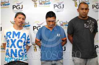 MÉXICO, D.F., 31MAYO2010.- Elementos de la policía, presentaron ante los medios de comunicación a tres sujetos uno de ellos de nacionalidad guatemalteca y los otros colombianos, como probables responsables del robo a viviendas del perímetro de Tlalpan. FOTO: CUARTOSCURO.COM
