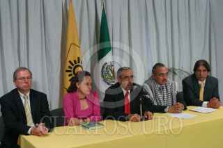 MÉXICO, D.F., 01JUNIO2010.- Jorge Calderón, Xadeni Méndez, Mohamed Odi, representante en México del Partido Al Fatah en Palestina, Saúl Escobar y el diputado José Luis Jaimes, durante una conferencia de prensa que se ofreció en las instalaciones del Partido de la Revolución Democrática (PRD), donde se condenaron los hechos violentos que se suscitaron el día de ayer donde miembros del ejército israelí atacó y dio muerte a tripulantes de una embarcación que transportaba ayuda humanitaria a la franja de gaza. FOTO: MISAEL VALTIERRA/ CUARTOSCURO.COM