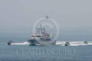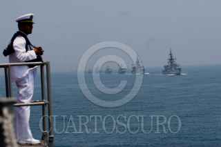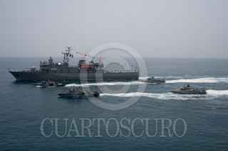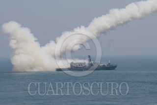 C.D. MADERO, TAMAULIPAS. 01JUNIO2010.- Felipe Calderón Hinojosa, presidente de México, acompañado de Francisco Saynez Mendoza, titular de la Secretaria de Marina, Guillermo Galván Galván, Secretario de la Defensa Nacional, Eugenio Hernández, gobernador de esta entidad, entre otros encabezo la ceremonia con la que se conmemoro el 68 Aniversario del Día de la Marina y el XCIII Aniversario de la Nacionalización de la Marina Mexicana. FOTO: GUILLERMO PEREA/CUARTOSCURO.COM